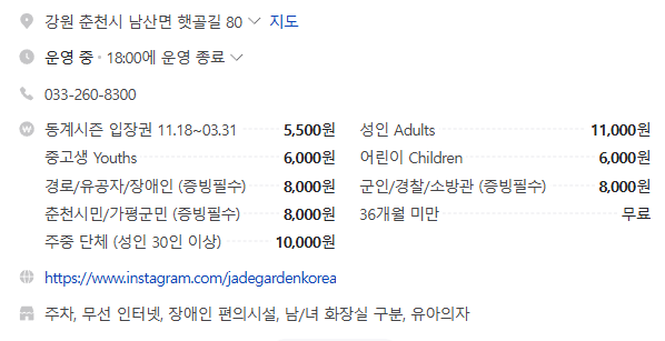 '제이드가든'은 춘천시민과 근처에 있는 가평군민까지 다 할인해 주네요 ㅠㅠ