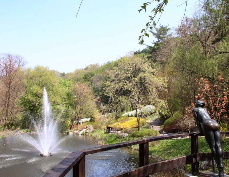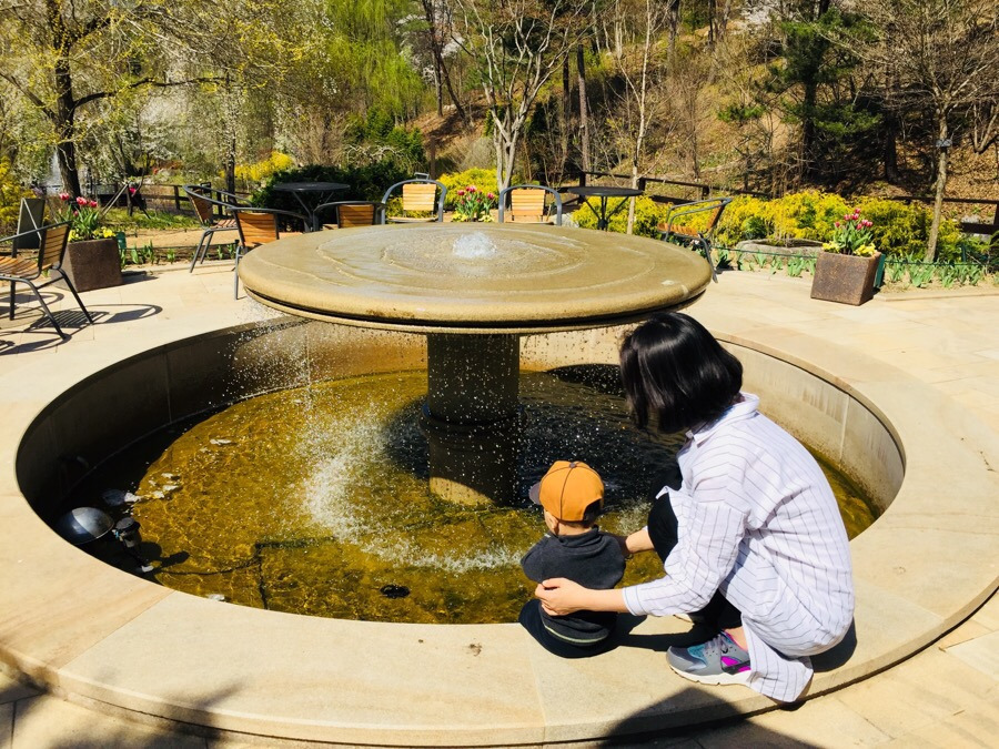 한 곳은 분수 앞! 그리고 또 하나는 작은 연못 앞!입니다.